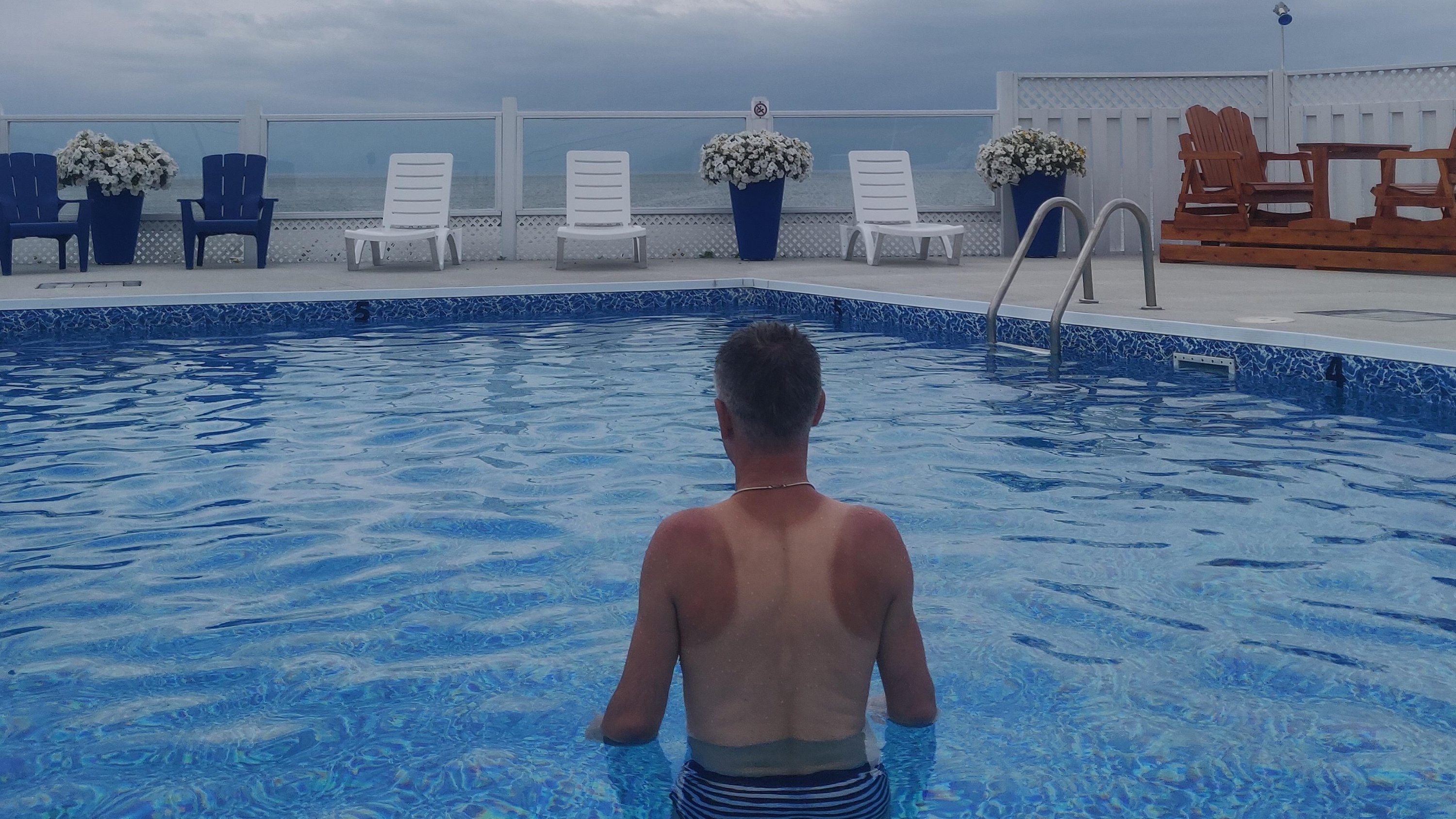 Fin d’étape à Matane dans un petit motel en bord de route ET de Saint-Laurent avec piscine, histoire de bien finir la journée !