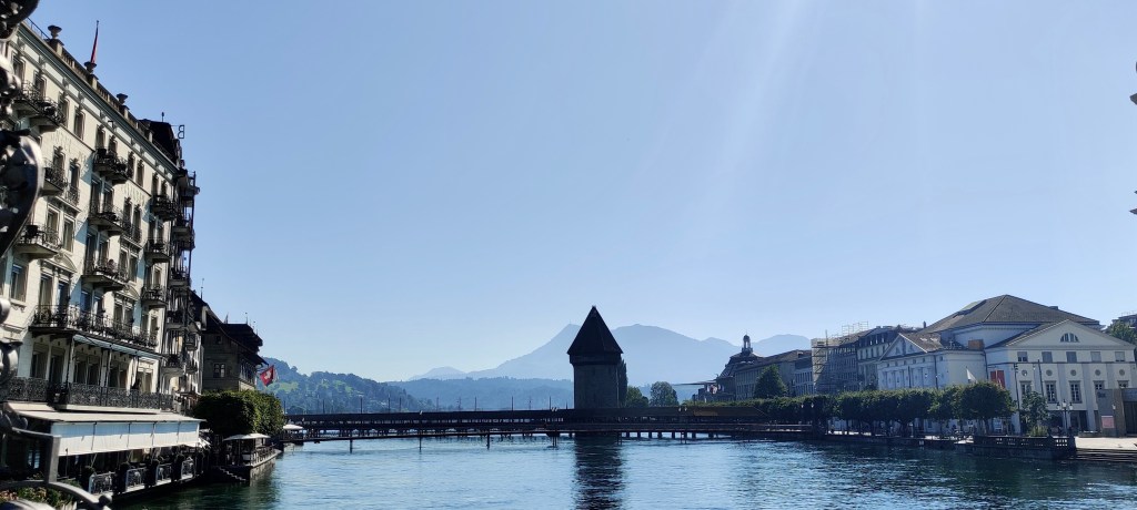 Arrivée sur Lucerne sans encombres, malgré la roue voilée. Lucerne donc, ville touristique au pied des Alpes suisses, au bord du Lac des 4 Cantons, et est principalement connue pour ses ponts de bois dont le Kapellbrücke !