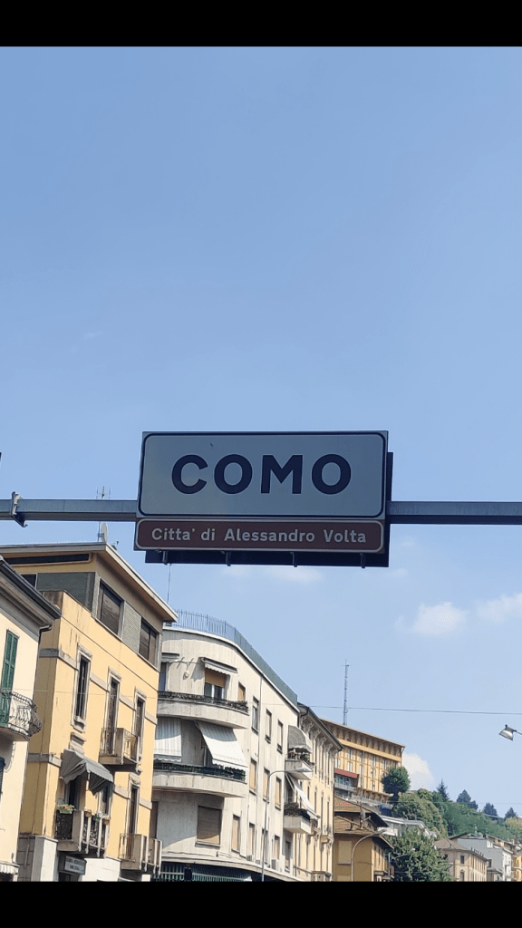 Sur la route pour sortir de Côme, petite pensée aux ancêtres Volta 😇