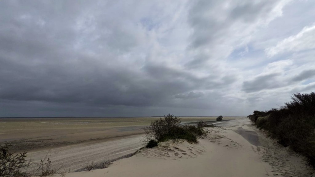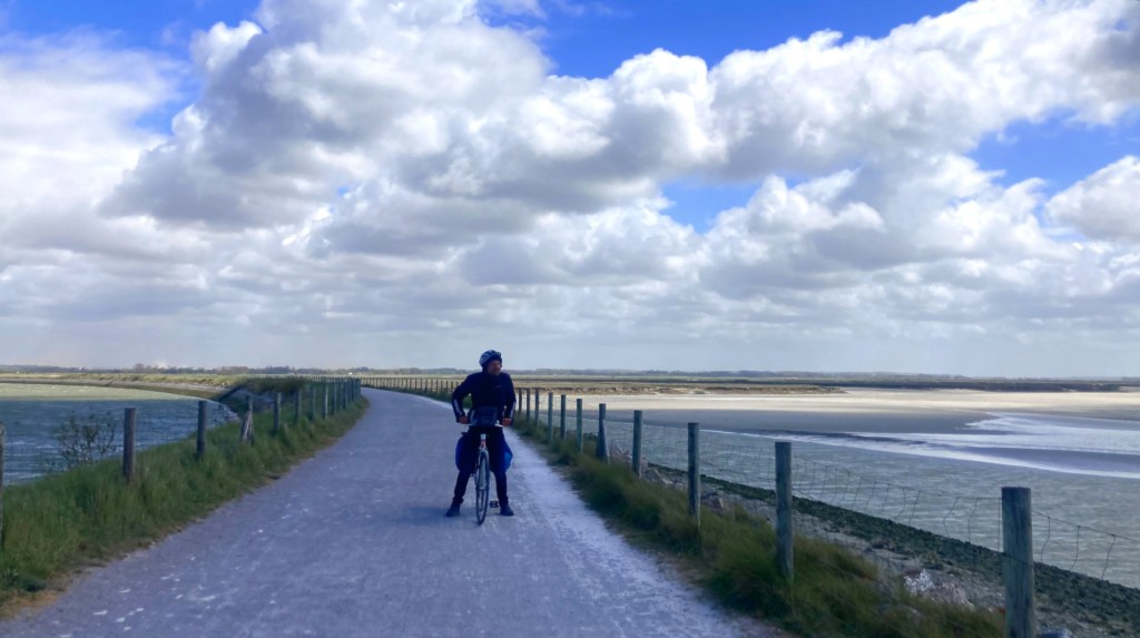 Il ne reste « plus qu’à traverser la digue », autant vous dire qu’avec le vent, on fait des pointes à 4km/h ! 😅