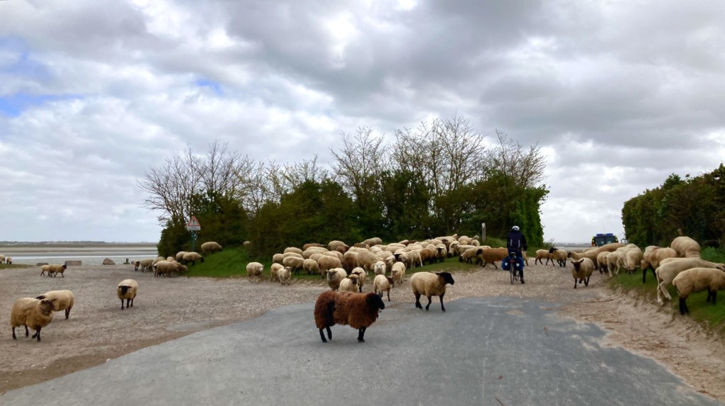 Le vent nous pousse. Rapidement nous découvrons Saint-Velery-sur-Somme. Enfin rapidement, rapidement… une fois que les moutons voudront bien nous laisser passer ! 😂