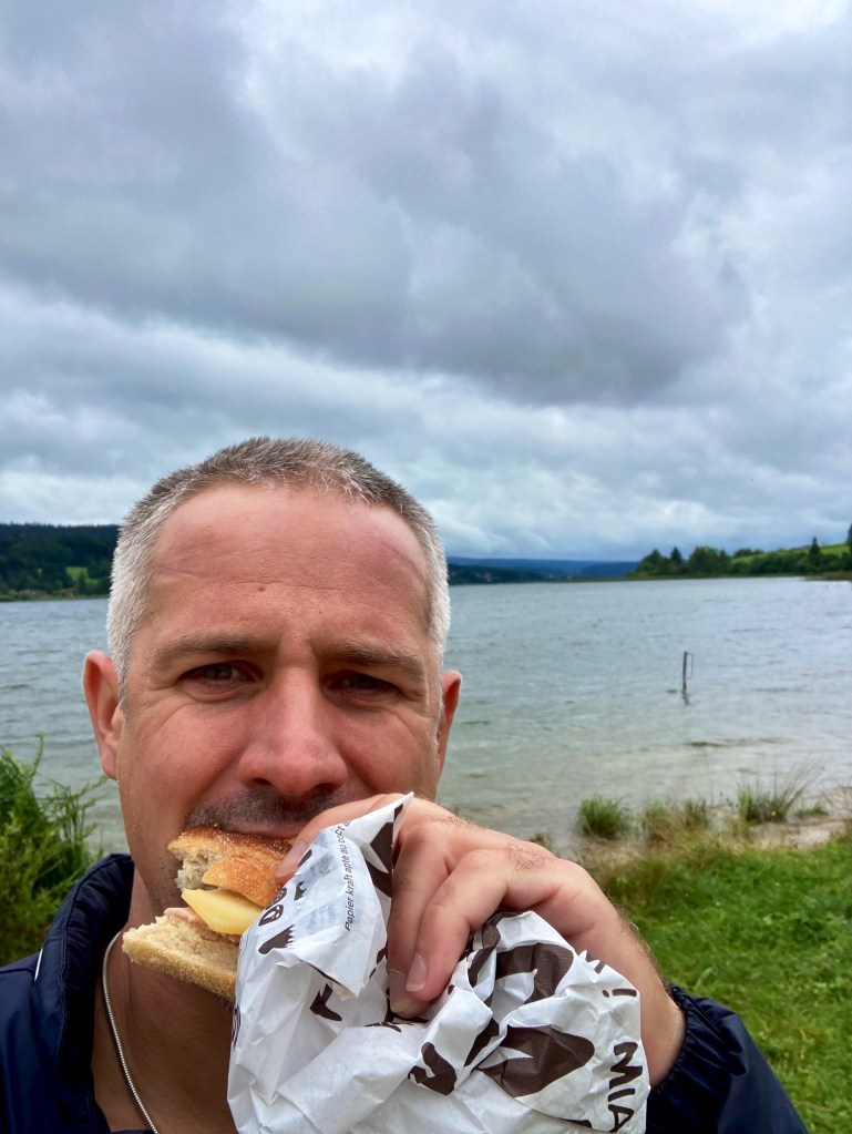 On profite de cette « belle » accalmie pour s’offrir un pique-nique de rêve au bord du lac de Saint-Point, peu avant la frontière avec la Suisse.