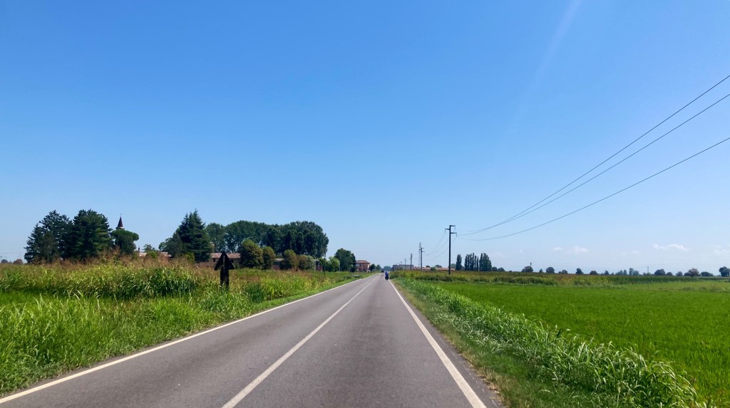 1. Pas la peine pour la carte j’en ai sorti une qui m’a permis de comprendre. C’est vrai que passer dans la grande plaine du Po est certainement moins agréable que les 5 terres et la côte ! Sans compter avec le manque d’ombrage et la route devant vous dont on ne voit pas la fin !