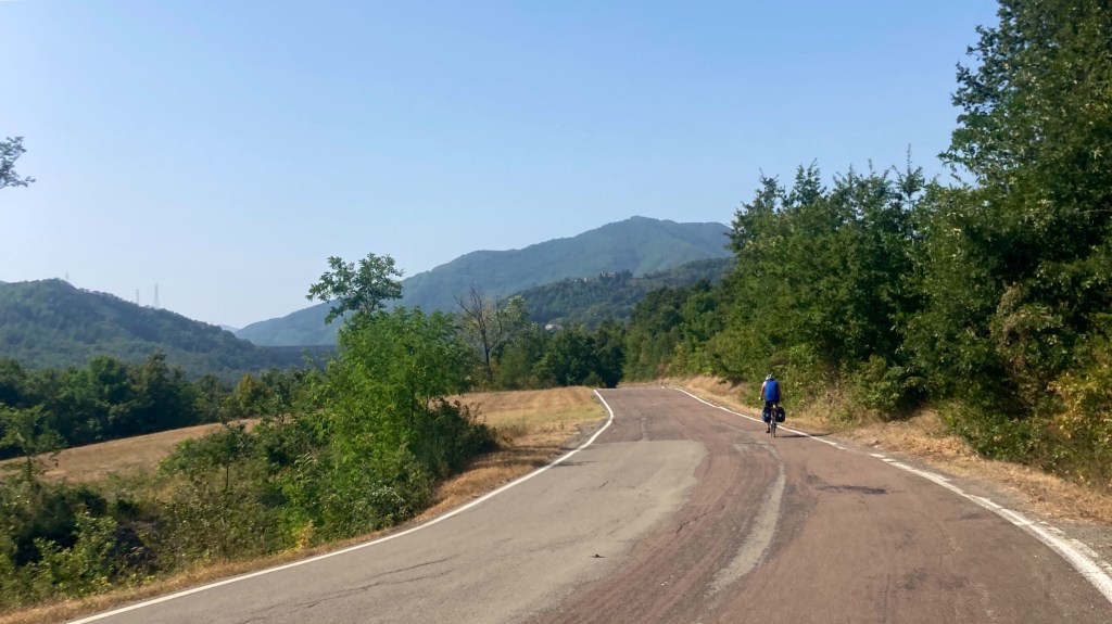 Alors forcément, qui dit traversée des Apennins dit étape à fort dénivelé et donc départ matinal avec la canicule 😁