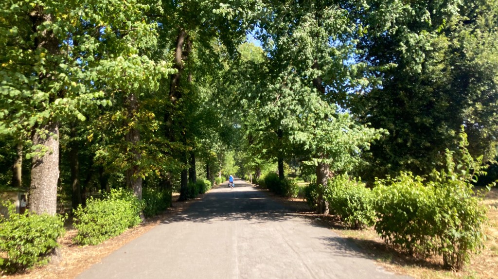 La route sinueuse est calme, paisible et plutôt ombragée.