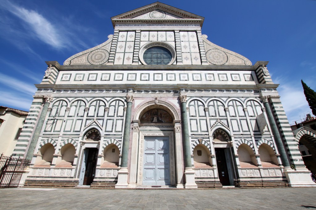 Santa Maria Novella est la première basilique de Florence, sa construction date de 1246, et sa façade est très certainement l’une des premières du type Renaissance.