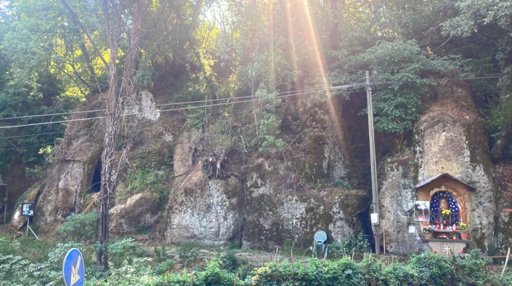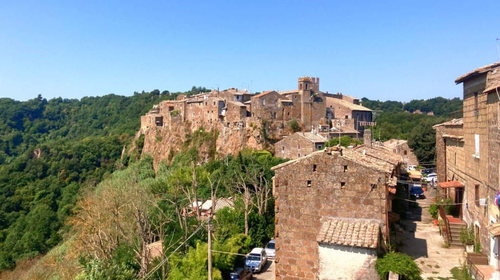 C’est donc par une belle matinée d’été méditerranéen que nous partons de Civita Castellana. Cette cité, Somme tout peu touristique, nous a offert des airs du sud, de cette Italie que l’on fantasme un peu, avec ses immeubles abîmés, ses anciens palais aux ocres magnifiques ou qui tombent en ruine, son linge qui pend aux balcons, ses enfants qui jouent au foot dans la rue… en bref ? Le sud 😀