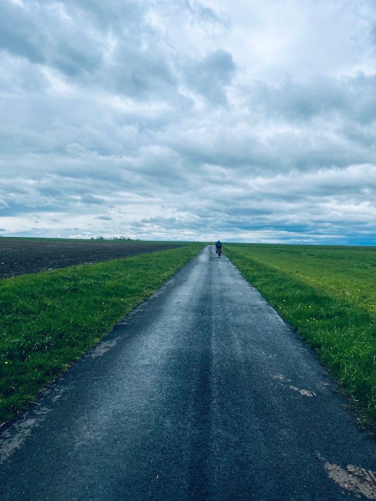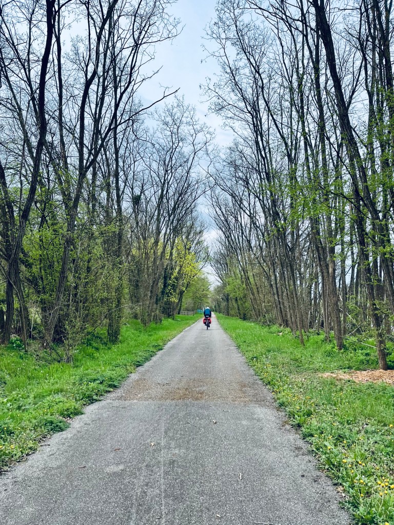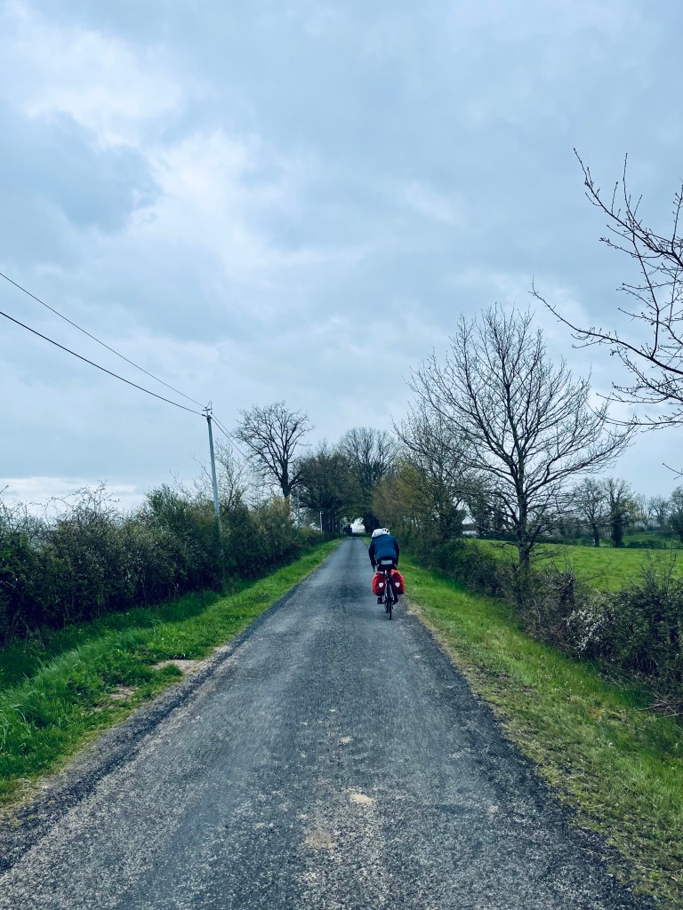 Première partie du trajet le long d’une ancienne voie de chemin de fer transformée en itinéraire cyclable. Au menu, calme et sérénité, malgré le vent.