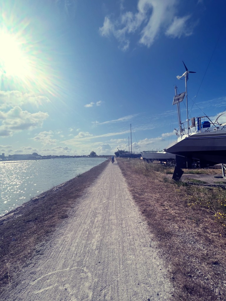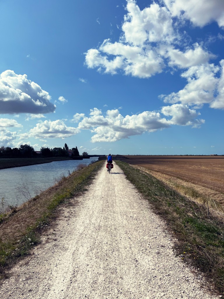 Nous commençons par longer la côte, perdus entre les digues, les marais secs, les marais mouillés, les canaux, les rivières et la mer.