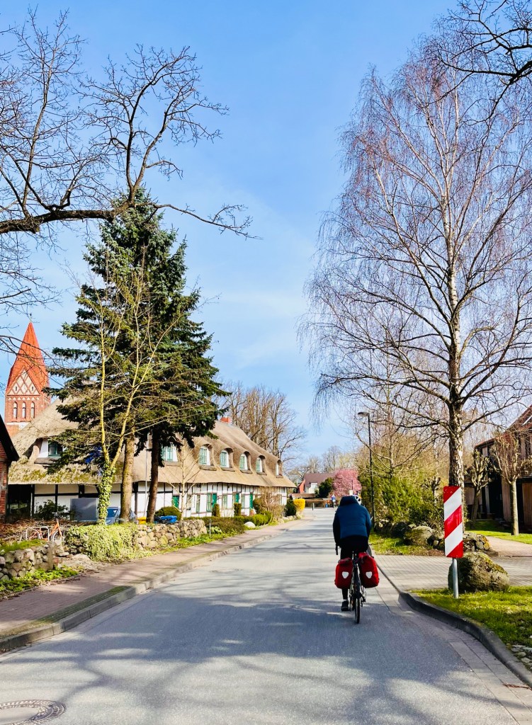 Au bout dâune trentaine de kilomĂštres, nous approchons Rostock. Les maisons se couvrent de chaumes, et câest beau đ€©