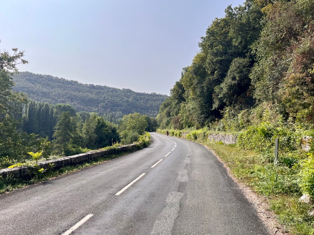 La route est calme et paisible, comme dans le Cantal, le Lot a un charme suranné qui me plaßt. On observe défiler des marcheurs qui font le pÚlerinage de Saint-Jacques-de-Compostelle, des vielles Peugeot 205 & Clio II, des passages à niveaux, des champs, des fermes, de vieilles voies ferrées désaffectées avec leurs postes de gares⊠un véritable voyage dans le temps.