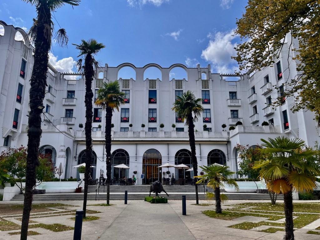 Puis au bout de 95km, nous arrivons Ă Dax. LâhĂŽtel est splendide, un bonjour Art DĂ©co de annĂ©es 1920.