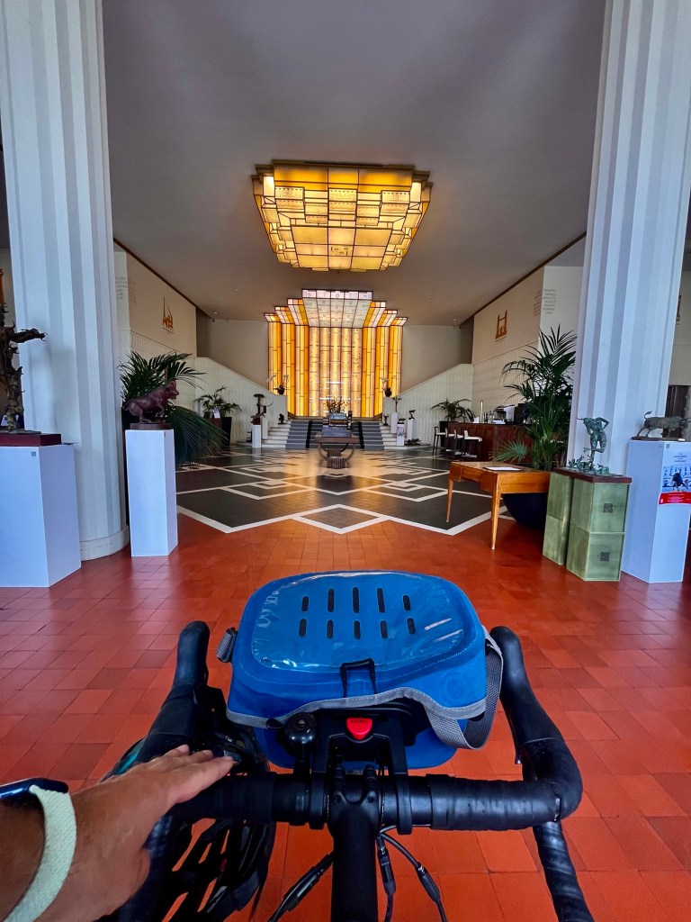 Et mon vélo et moi nous nous sentons tout petits dans ce palace.