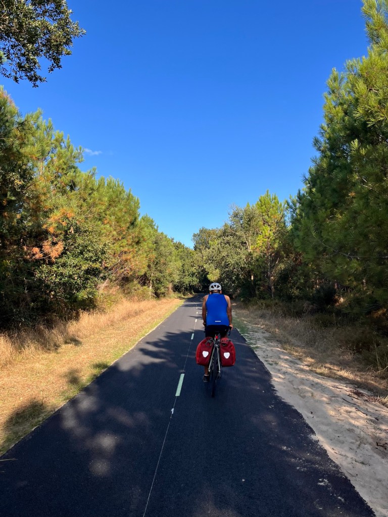 à mesure que je pédale dans les pinÚdes immenses, je comprends pourquoi mon pÚre affectionnait autant cette région. Elle est à son image, simple et paisible, douce et nature, tranquille.