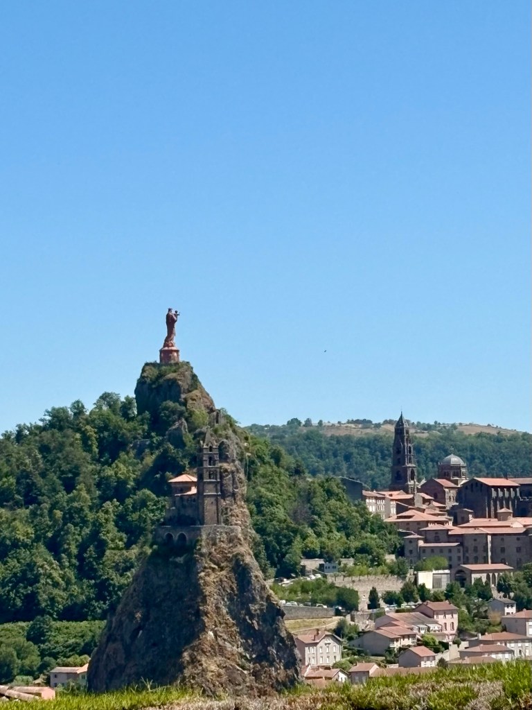 Enfin, après 84 km, 1280 m de dénivelé cumulé et 5h30 à pédaler, nous arrivons au Puy-en-Velay. Toujours aussi beau, avec son site exceptionnel, son patrimoine, son histoire, ses pèlerins… Une ville superbe !