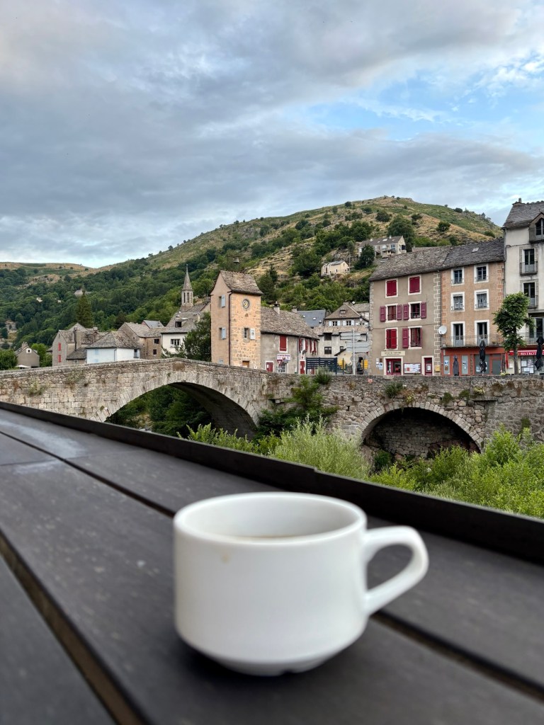 En ce quatrième jour de notre périple, le réveil se fait à l’aube. L’occasion pour moi de terminer mon article de blog de la veille… et de tremper les pieds dans le Tarn pendant qu’Étienne dort encore profondément.